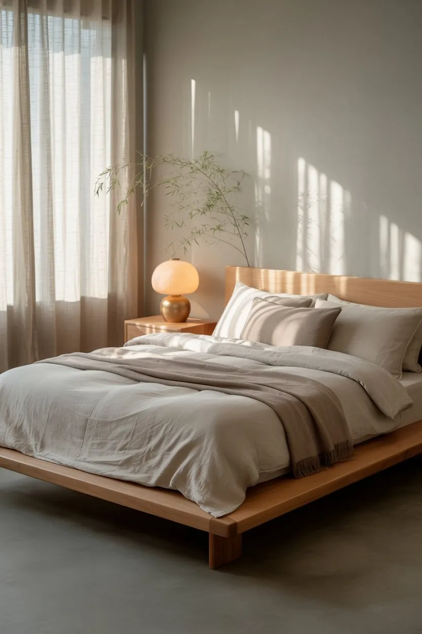 Japandi is a blend of Japanese zen and Scandinavian simplicity. This style focuses on intentional living, using quality over quantity, calming colors, and natural materials to create a sleep sanctuary.